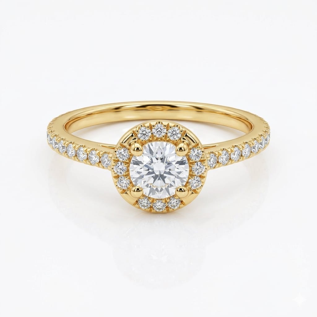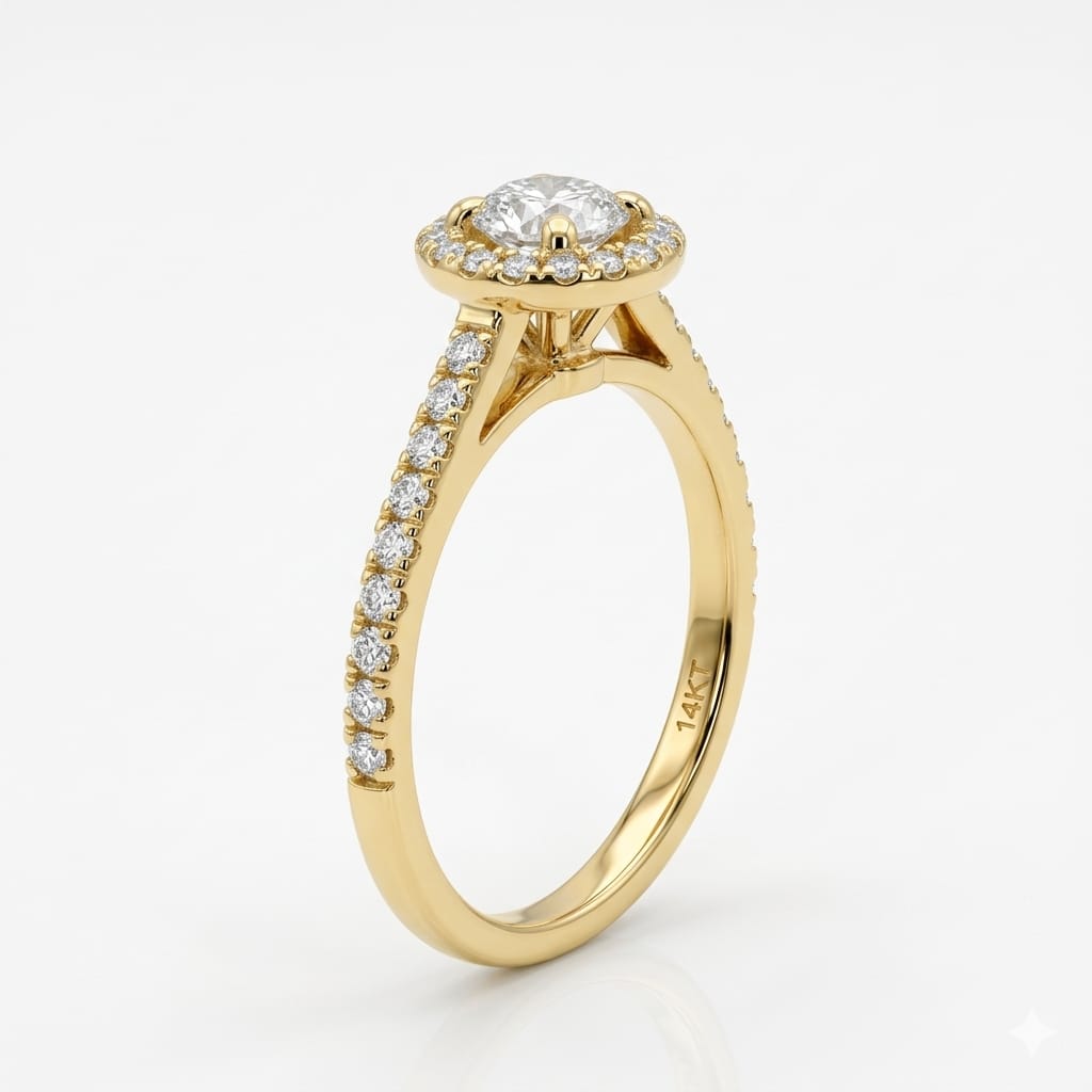 סביב היהלום המרכזי משובצים 30 יהלומים טבעיים נוספים, במשקל כולל 0.42 קראט, בדרגת צבע G וניקיון VS. יחד הם יוצרים הילה נוצצת שמעצימה את האור, הנצנוץ והנוכחות של היהלום המרכזי. יהלומים נוספים לאורך החישוק משלימים את המראה היוקרתי ומעניקים לטבעת זוהר רציף מכל זווית.