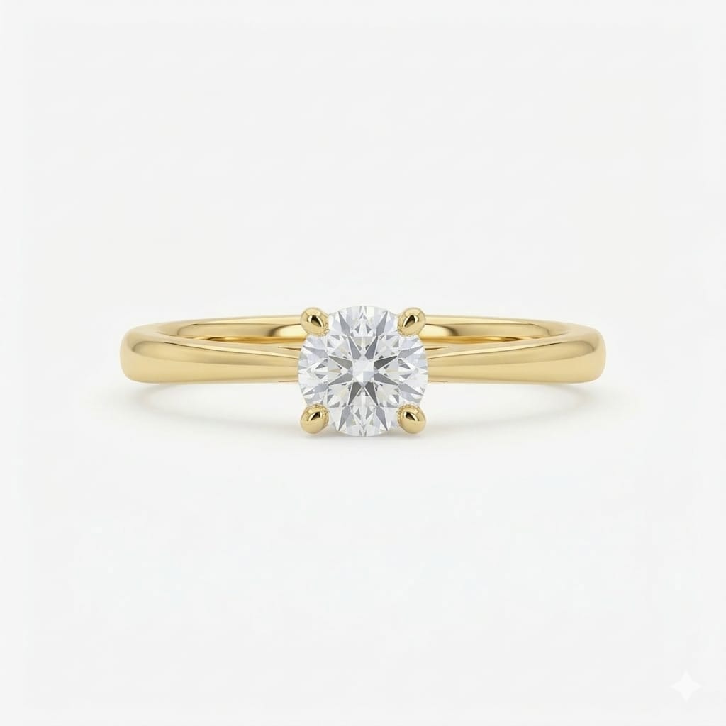 היהלום משובץ בתושבת ארבע שיניים קלאסית, המאפשרת חדירת אור מרבית ומדגישה את הנצנוץ הטבעי והאש הפנימית של האבן. החישוק המעוצב בקווים נקיים ובגימור מבריק מעניק לטבעת מראה אלגנטי, נצחי ומתאים לכל סגנון.
