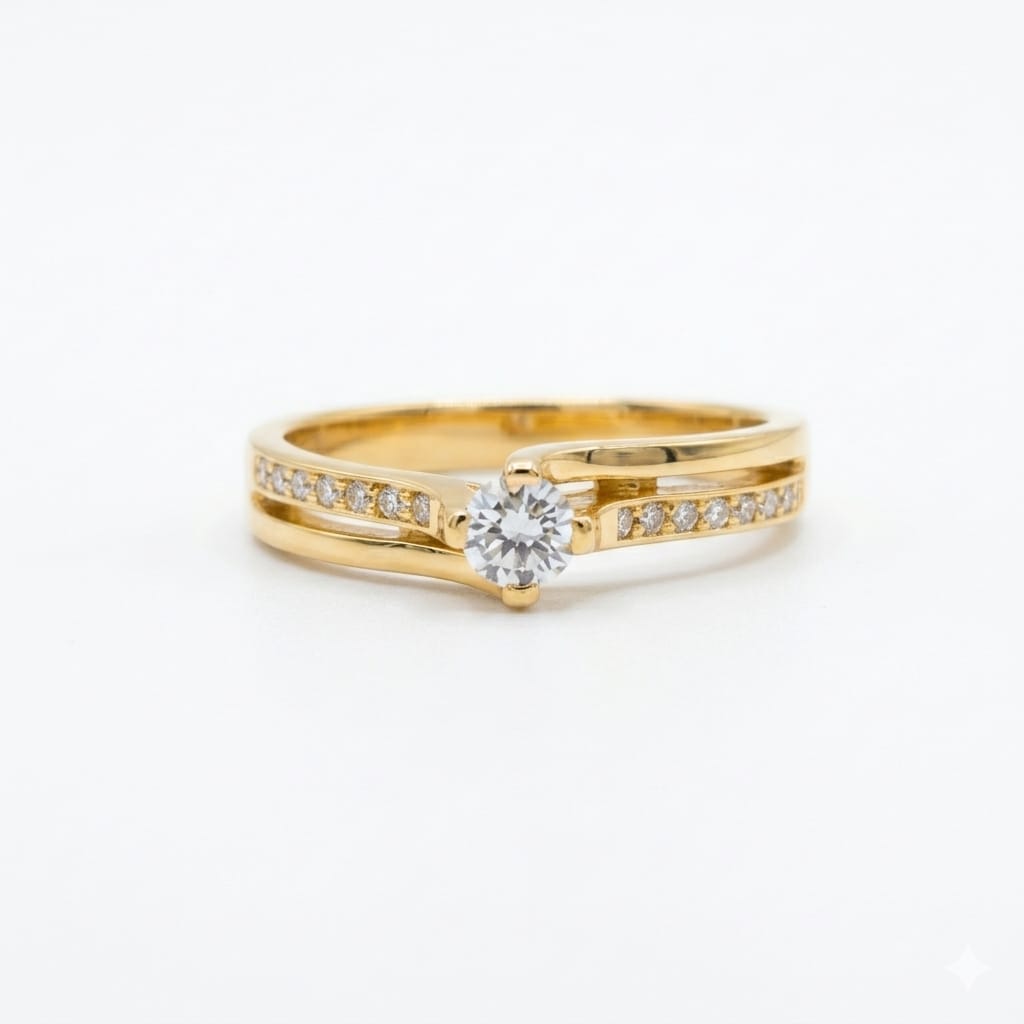טבעת יוקרתית זו עשויה זהב 18K מלא ומשובצת ב‑15 יהלומים טבעיים במשקל כולל 0.28 קראט, כולם בדרגת צבע F וניקיון VS — שילוב המבטיח ברק לבן, נקי ומרשים במיוחד.
