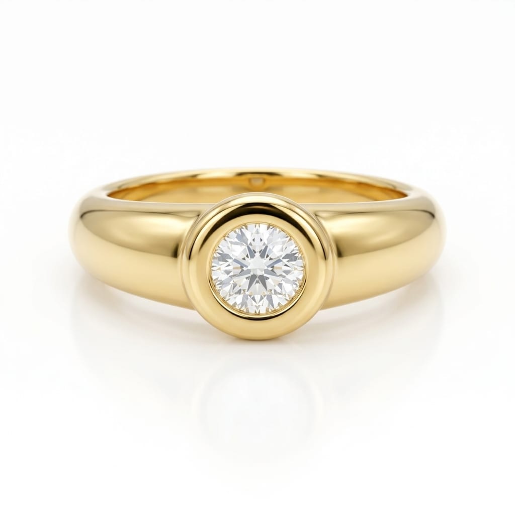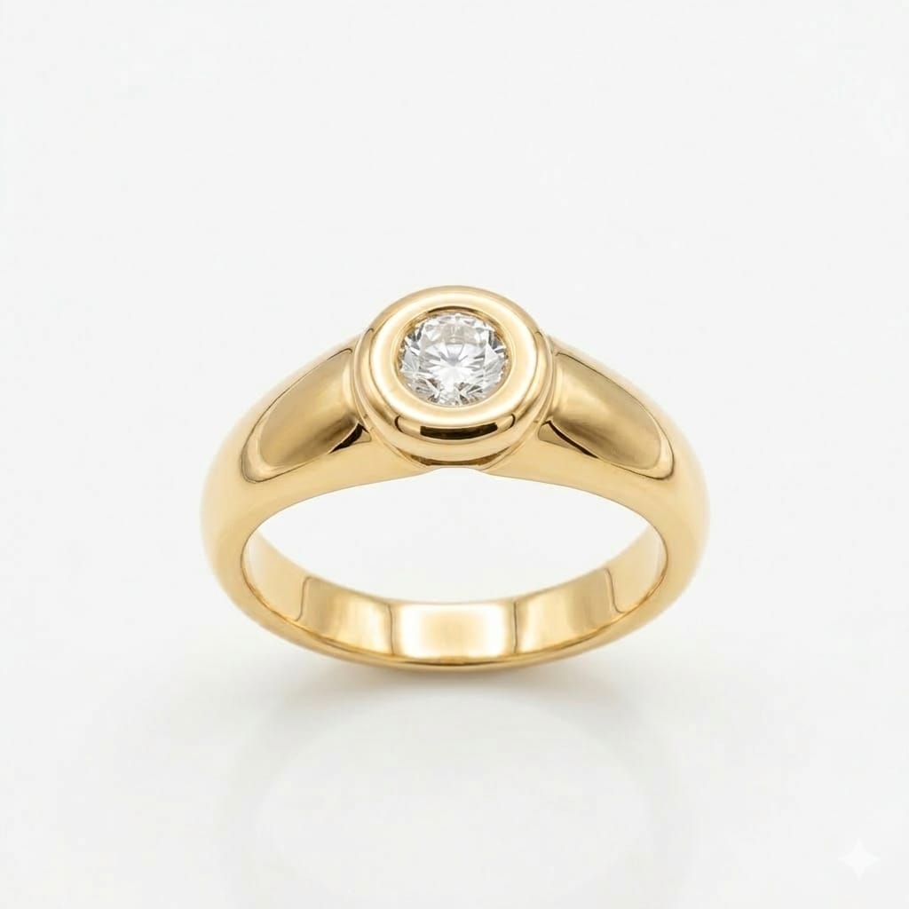 היהלום משובץ בתושבת בזל מודרנית, המעניקה לטבעת מראה חלק, אלגנטי ובטוח, תוך הדגשת האבן המרכזית בצורה מרהיבה. החישוק המעוצב בקווים נקיים ובגימור מבריק מוסיף תחושת יוקרה ומודרניות, ומתאים לכל סגנון ולכל אירוע.