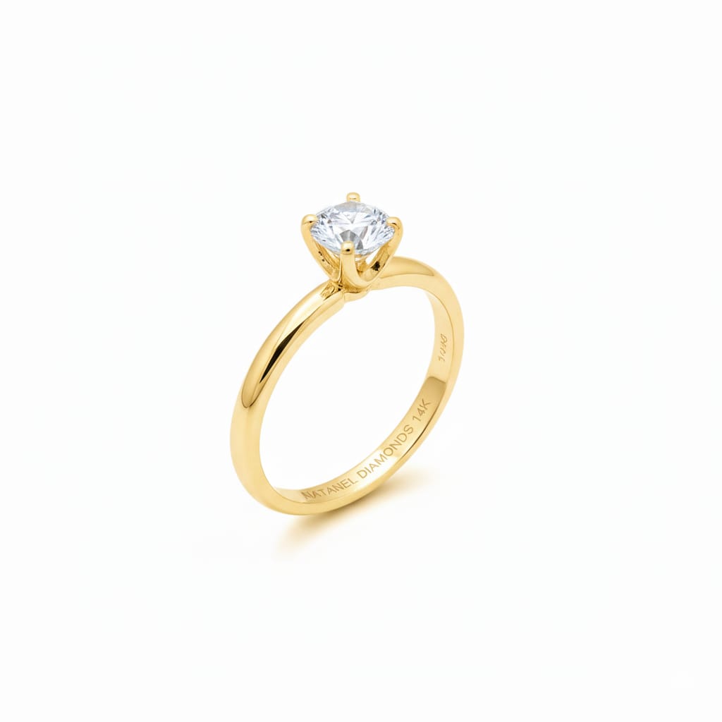 14K Gold Solitaire Ring – 0.62CT Diamond (G/SI1) Classic elegance featuring a single 0.62 carat round diamond of G color and SI1 clarity, set in polished 14K gold.