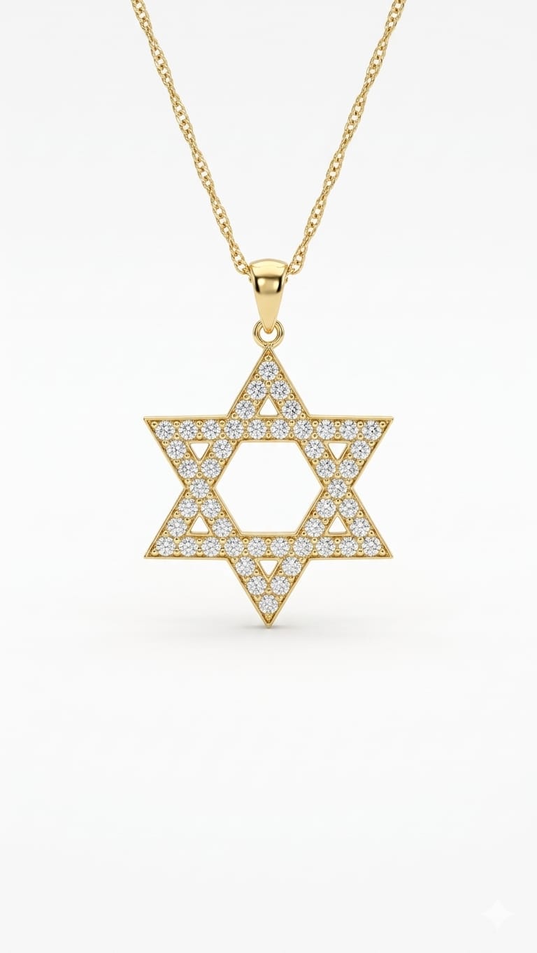 This elegant 14K gold Star of David pendant is crafted with precision and adorned with a full diamond outline for maximum brilliance. The clean geometric design highlights the beauty of the six‑pointed star while the high‑quality diamonds add a radiant, luxurious finish. A perfect blend of tradition, symbolism, and fine jewelry artistry.