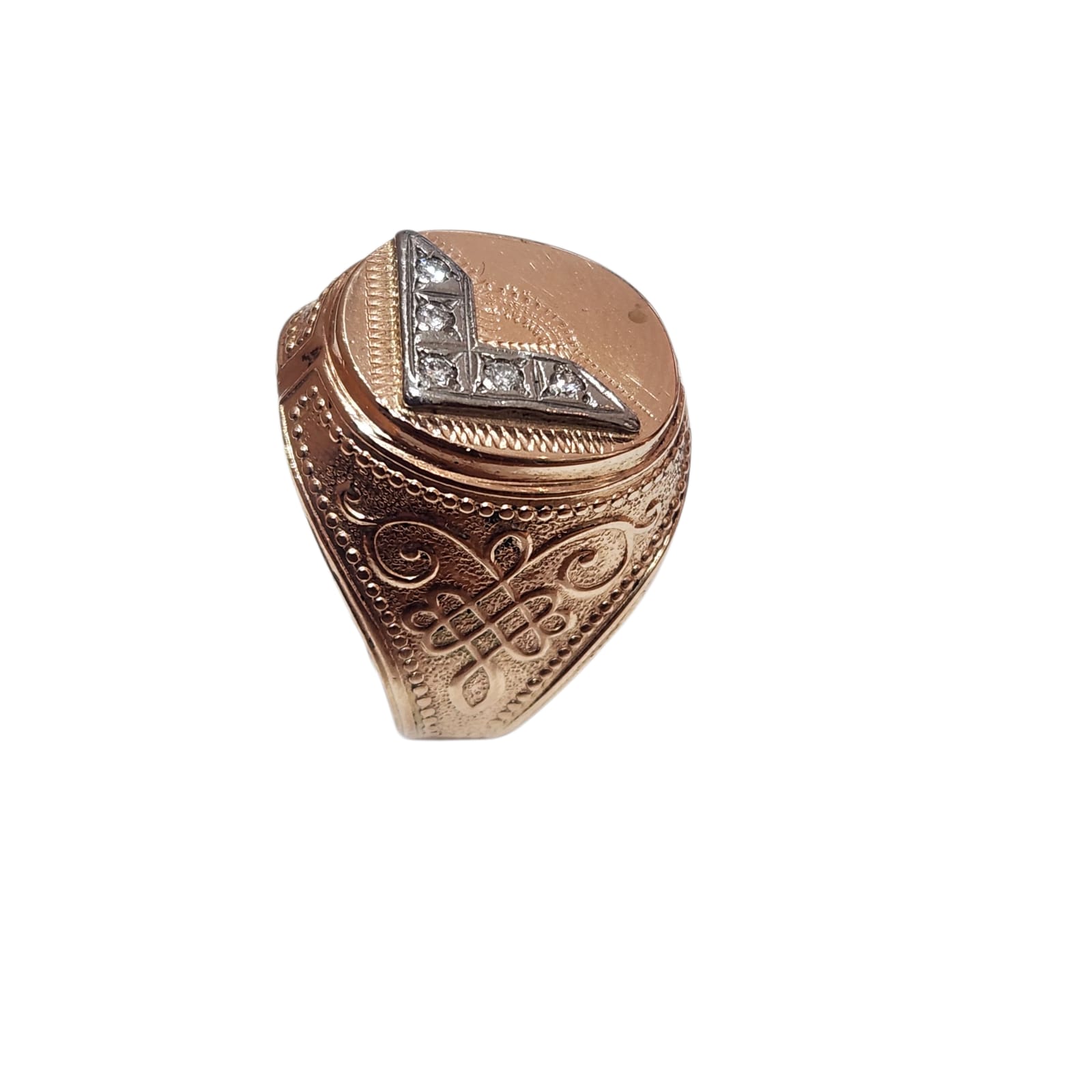 14k Gold NATURAL Diamond Men’s Ring Nice designs all around the ring with a White Gold Corner with diamonds