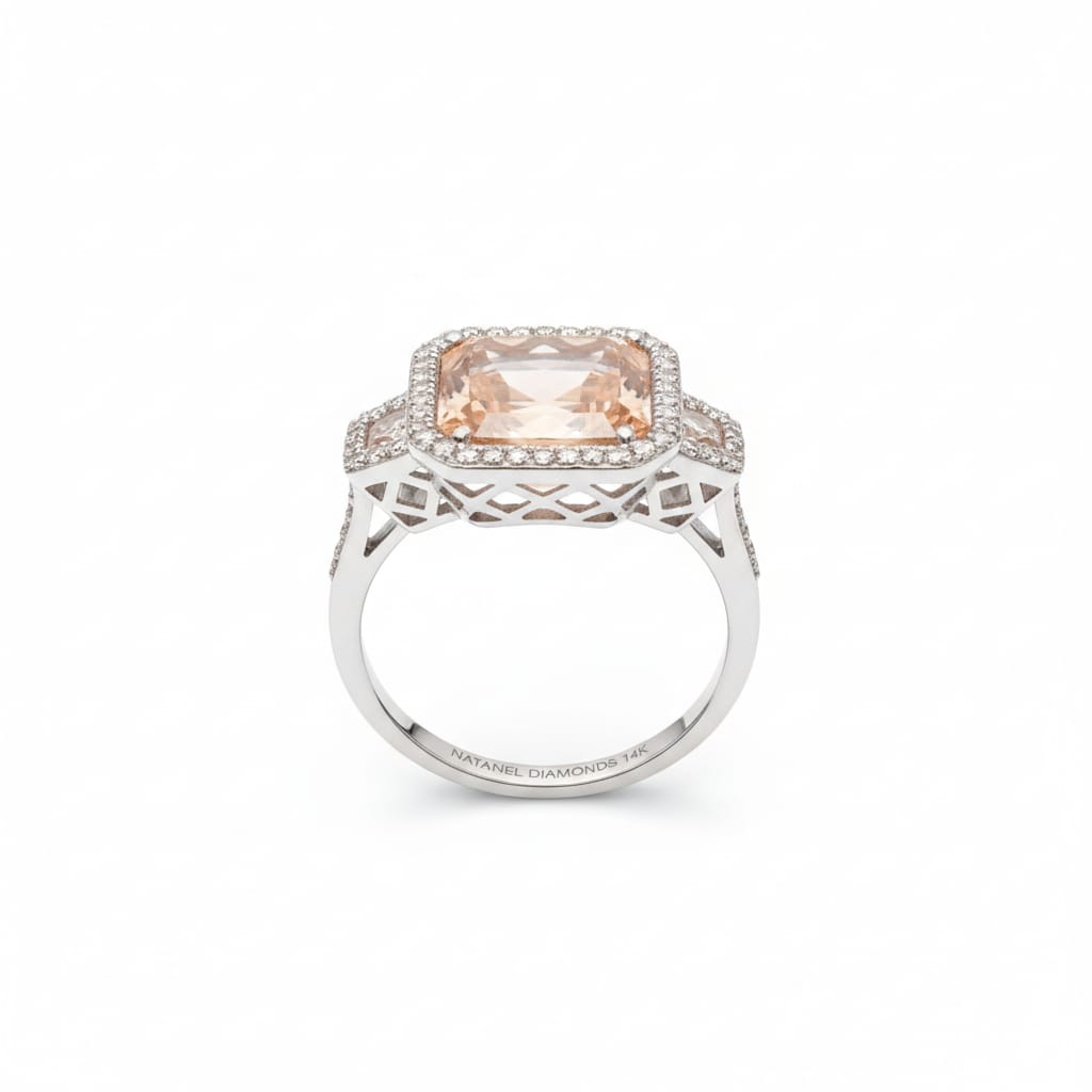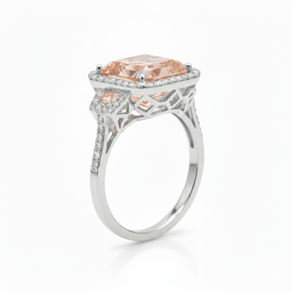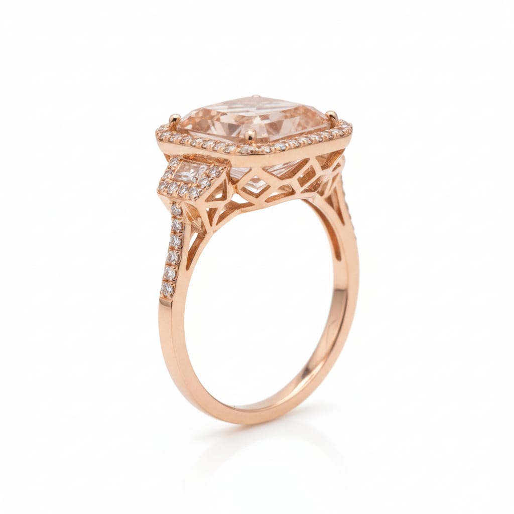 Material: 14K Yellow Gold Main Stone: Square-cut pink gemstone Accent Stones: