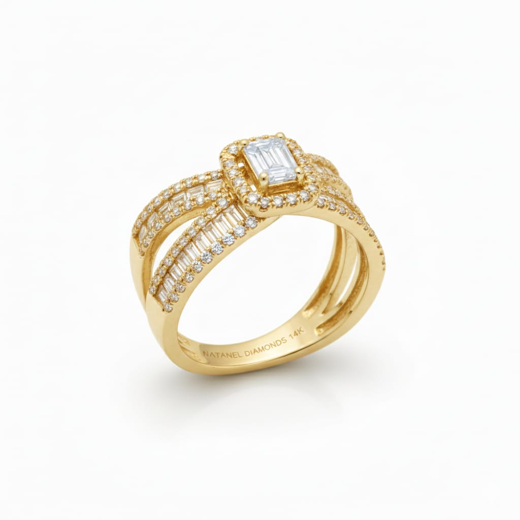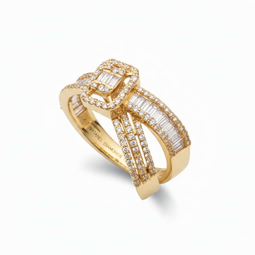 Immerse yourself in the world of refined luxury with this extraordinary 14K gold ring — a true celebration of brilliance, craftsmanship, and timeless elegance. Designed with meticulous attention to detail, this masterpiece showcases an exceptional fusion of modern geometry and classic diamond artistry, creating a piece that radiates sophistication from every angle.