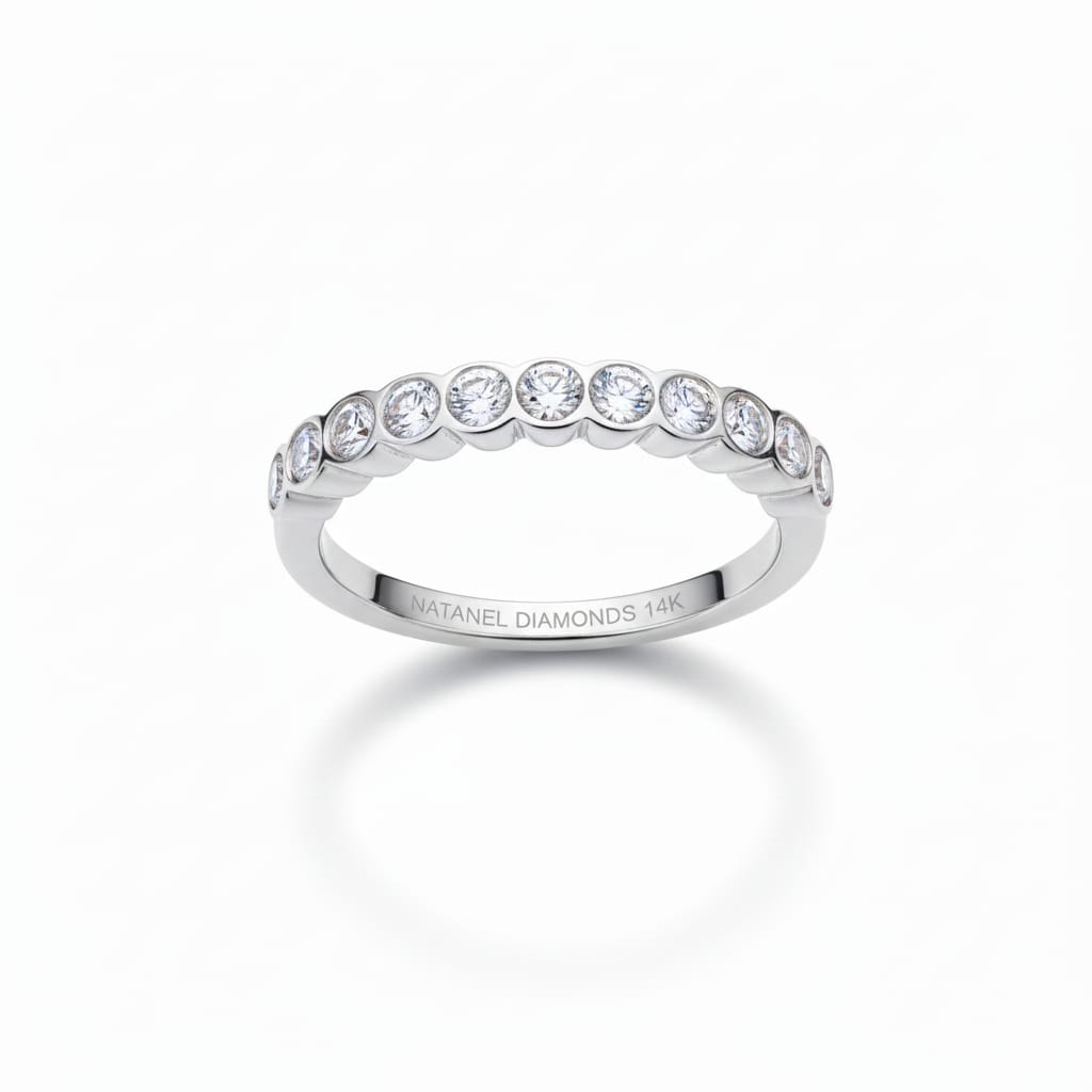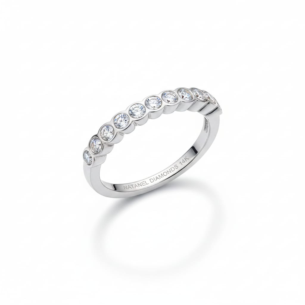 14K Gold Ring with 11 Diamonds – 0.55CT G VS A sleek and elegant band featuring 11 natural diamonds with exceptional G color and VS clarity. Totaling 0.55 carats, this timeless piece offers refined sparkle and modern sophistication