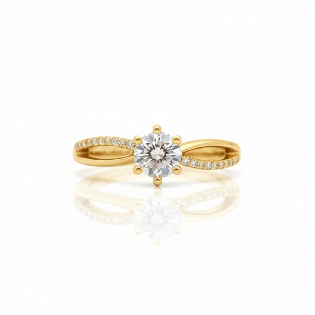 A refined 14K gold ring featuring a 0.24ct center diamond in H color and VS clarity, offering a clean and radiant sparkle. The band is accented with 24 side diamonds totaling 0.12ct, graded G color and SI clarity, adding a delicate shimmer and a touch of timeless elegance.