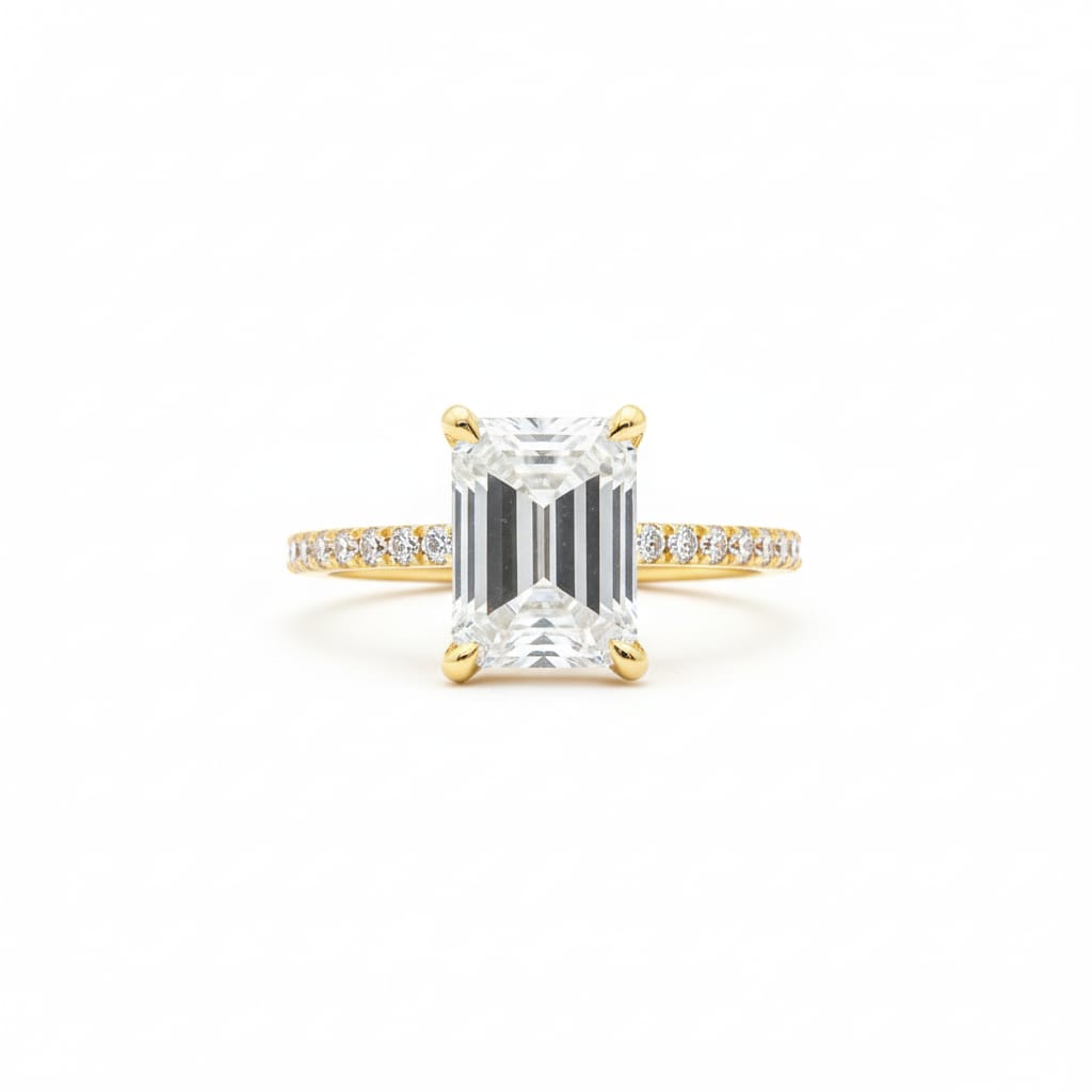 The Luxe Emerald‑Cut Halo Ring