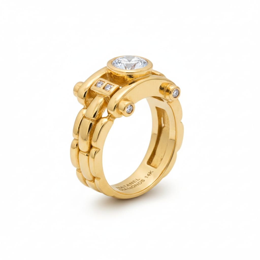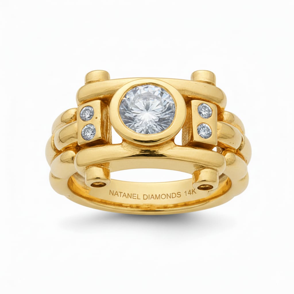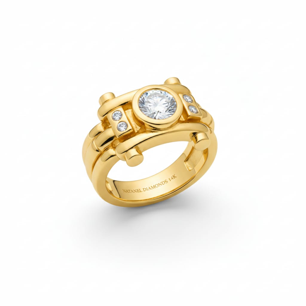 Every detail of this piece reflects expert craftsmanship — from the precision of the setting to the smooth polish of the 14K gold band. The result is a ring that feels both modern and timeless, bold yet refined, making it a perfect choice for those who appreciate high‑quality diamonds and sophisticated design.