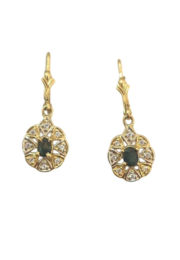 YELLOW GOLD DROP EARRINGS - DARK BLUE STONESYELLOW GOLD DROP EARRINGS – DARK BLUE STONES