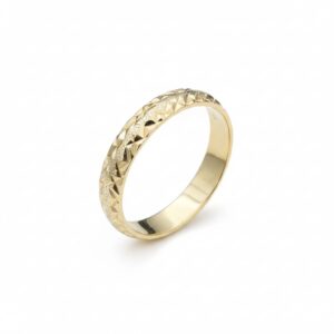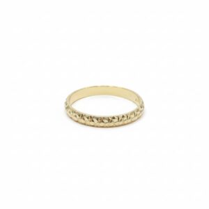14K Gold Geometric Textured Ring – Wide Band
